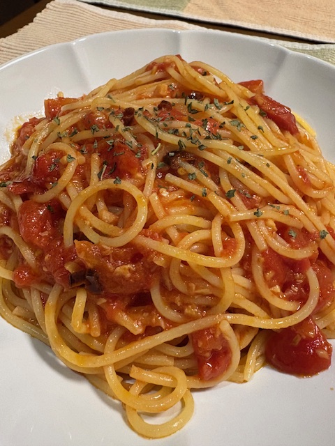 休みの日の夜ご飯の事です…料理好きの次男が得意のアラビアータをパスタで作ってくれました。