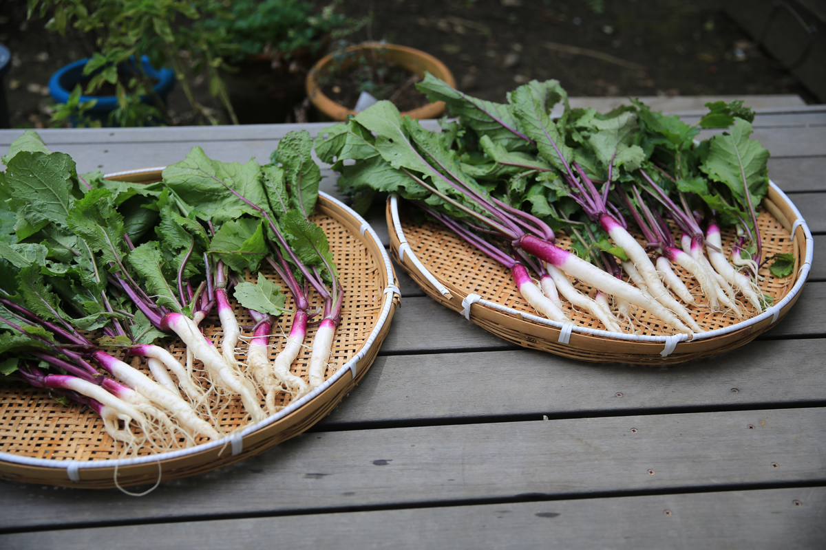 昨日、畑で日野菜カブを収穫しました。