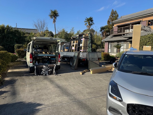 ジャストホームの駐車場の脇にある倉庫には、看板やのぼり旗のような販促グッズだけでなく、はしごやスコップ、ホースリールなど現場の作業に欠かせない道具、そして合板や垂木、ビスなど各種残材が大量に収納されています。現場の工事が進むにつれ、なぜか倉庫の荷物は少しずつ増えていくのです。ただ、荷物が増えすぎると、どこに何がいくつあるのか分からなくなってしまうので、年末に整理をします。今年はいつもより徹底的に片づけました。