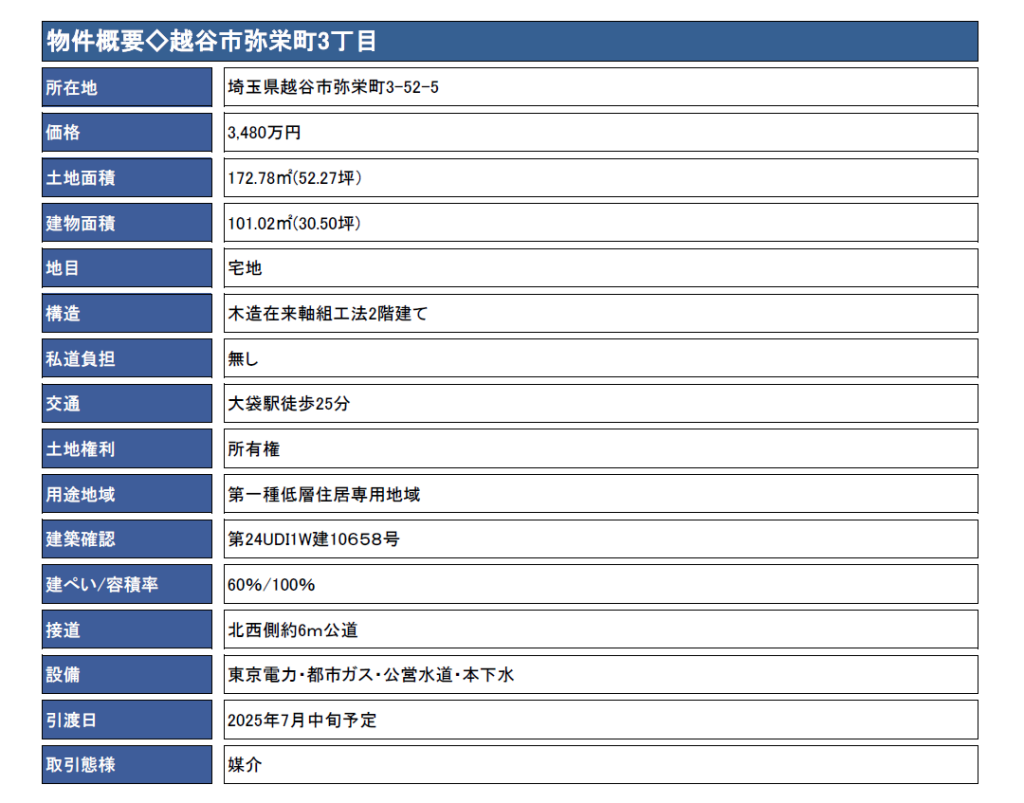 | 交通 | 「北越谷」駅バス9分「弥栄3丁目」停歩3分 |