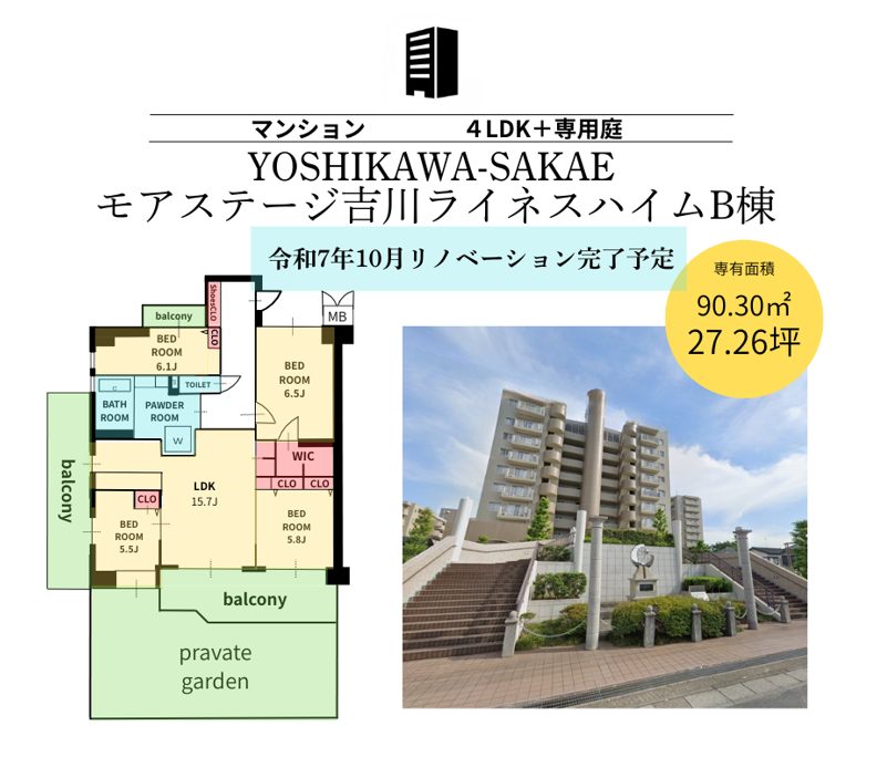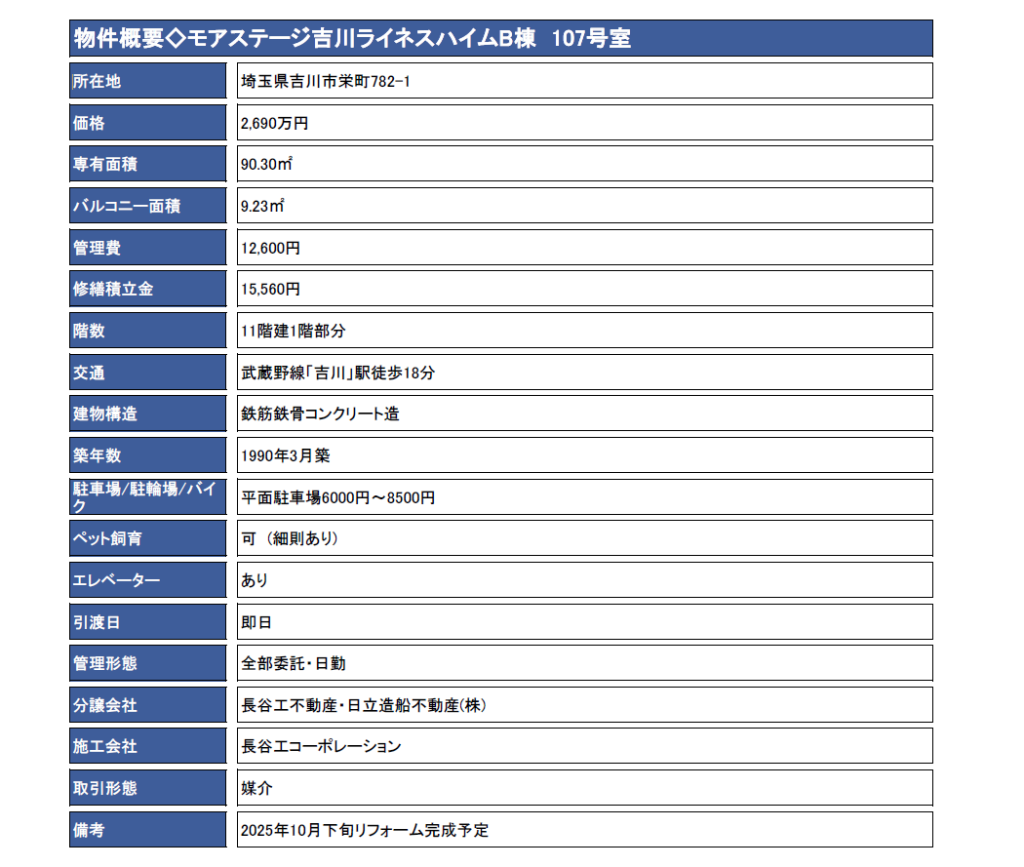 | 2,690万円 | 埼玉県吉川市栄町782‐1 | 90,30㎡ | 9.23㎡ | 4LDK+WIC+専用庭 |