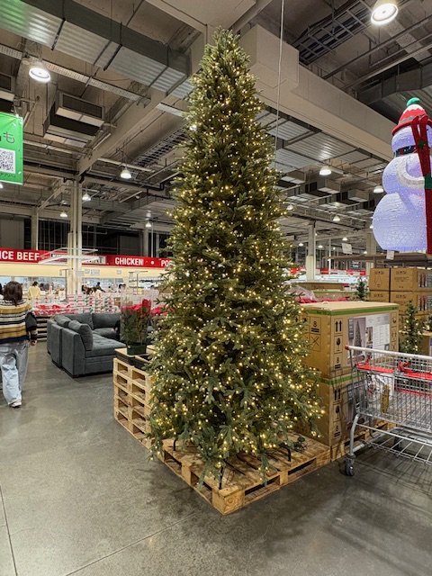 店内に入るとクリスマス一色で、特大ツリーに巨大なスノーマンやサンタのイルミネーションオブジェ✨