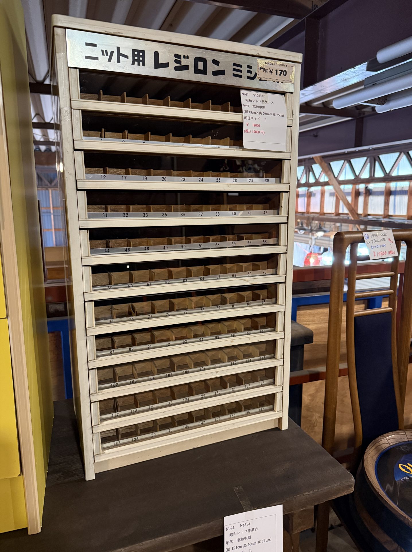 これはお店で使われた糸のディスプレー棚
