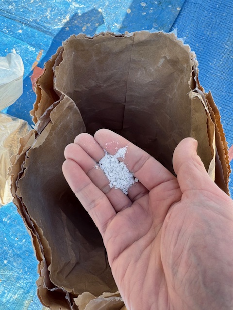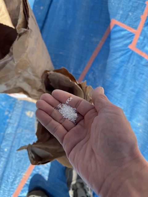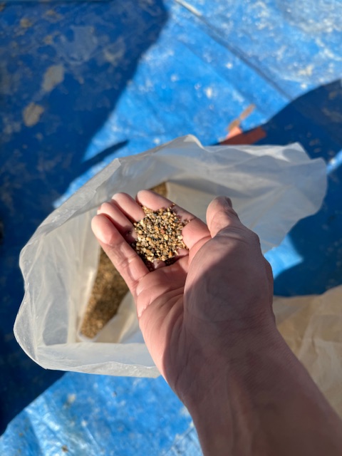 微妙に違う石材を3種類調合して仕上材を作ります。