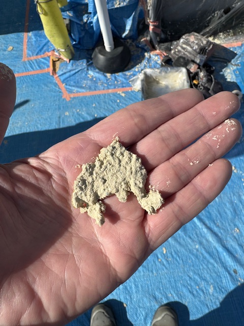 刷毛と水で洗って石材を出していきます。