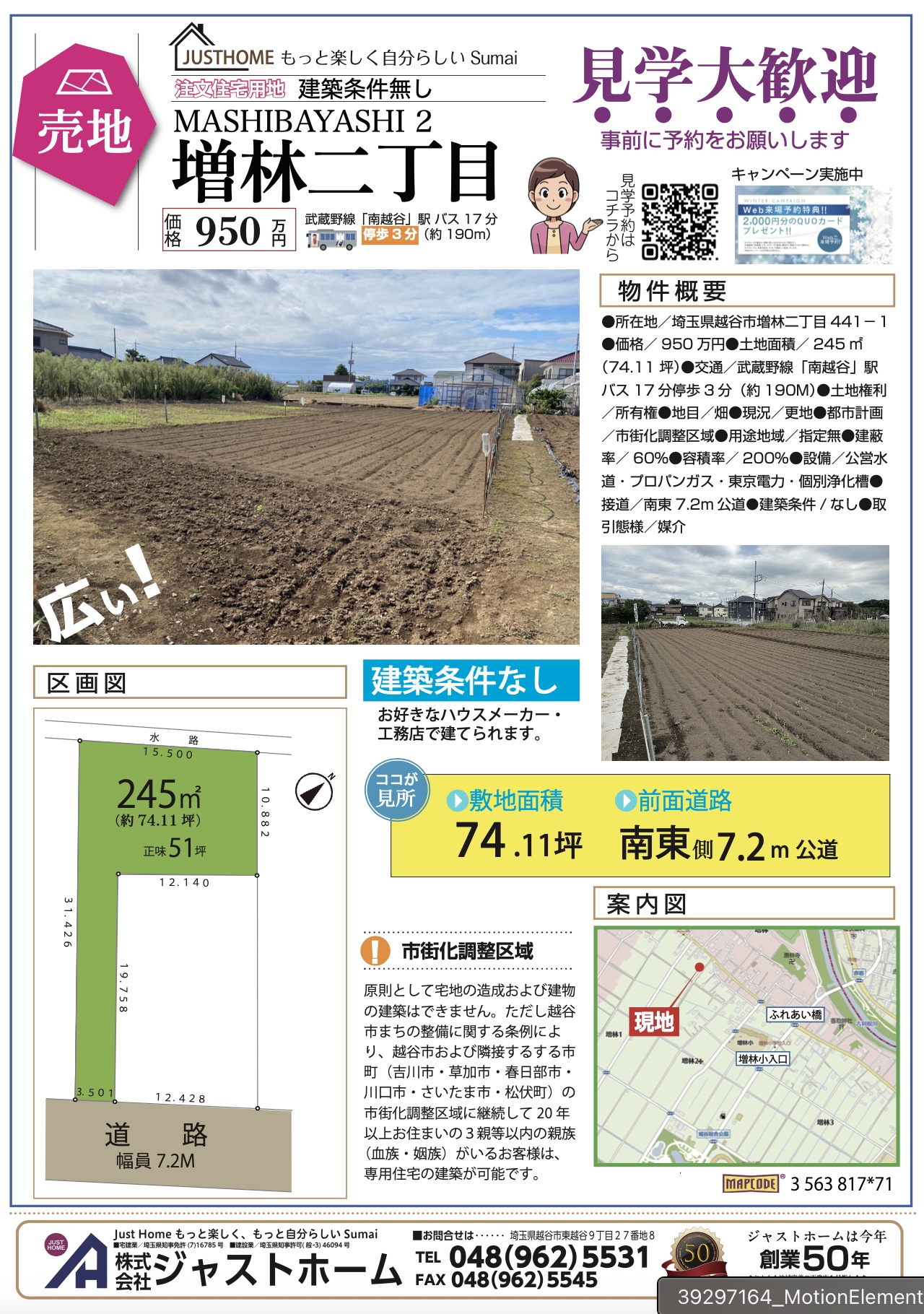 売地物件と中古戸建物件のチラシになります。新築がないのが残念ですが、もうしばらくお待ちください。