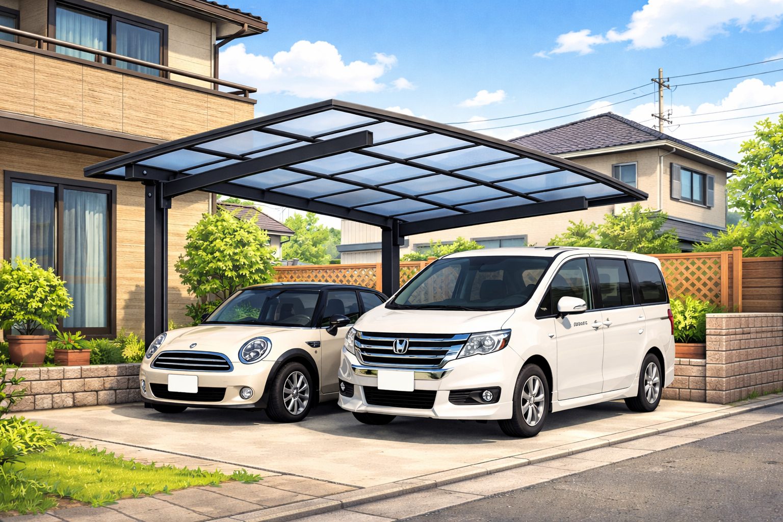 既存住宅が建蔽率ギリギリの場合、カーポートを設置するとオーバーしてしまうと違反建築物になるというケースも十分にあり得ます。確認申請の有無とは別に、建蔽率チェックは必須 です。